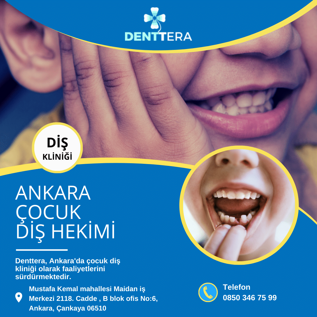 Ankara çocuk diş hekimi konusunda DENTTERA kuruluşunu tercih edebilirsiniz.  Diş tedavi randevu için 0850 346 75 99 arayabilirsiniz.